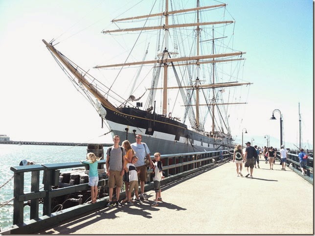 We then walked the remaining 2 or 3 blocks to Fishermans Wharf. There they had a little area with some old ships, which was fun for the kids to look at. Although Fisherman’s Wharf is on most lists of “Things to do when you are in San Francisco,” it was pretty smelly and there were tons of tourists there. We did eat at a few of the different fish stands there and it was okay. Fisherman’s Wharf was good to see once, but I wouldn’t schedule a lot of time there if I were doing it again.